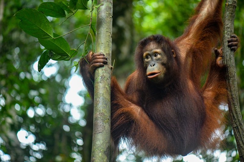 Rotan is a vital food source for wild orangutans, and our Jungle School keepers ensure that their young students are introduced to a variety of wild foods like this during their rehabilitation journey. The younger orangutans look up to Popi, learning from her foraging expertise as she navigates these complex, spiky treats.