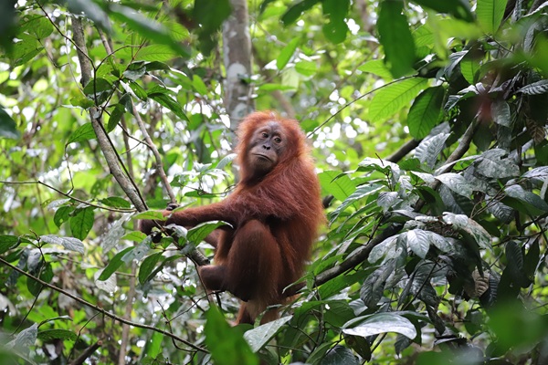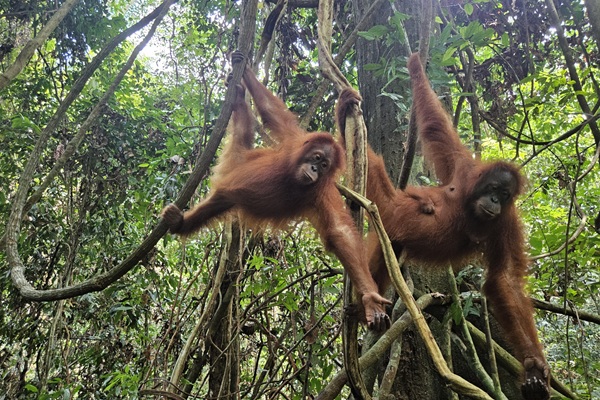 Siti continues to do very well. She travels confidently through the forest, forages widely, and shows endless energy—leaping through thick lianas with Sudin close behind, again and again until they’re happily tired. The pair often spends time near Citrawan and her infant Canur. Siti is fascinated by the baby and sometimes tries to hold her; Citrawan is patient but protective, stepping in when needed.